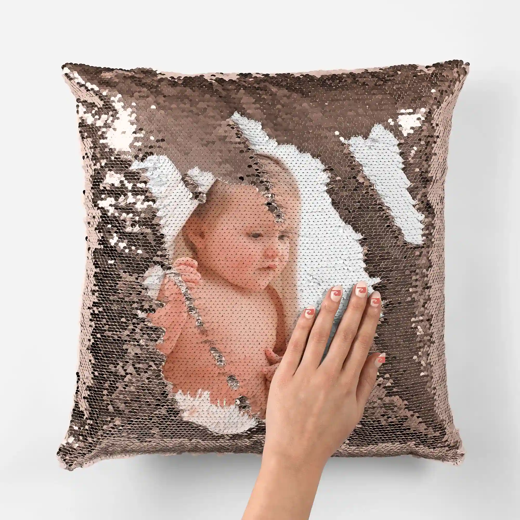 фото на подушке с пайетками (цвет золото).